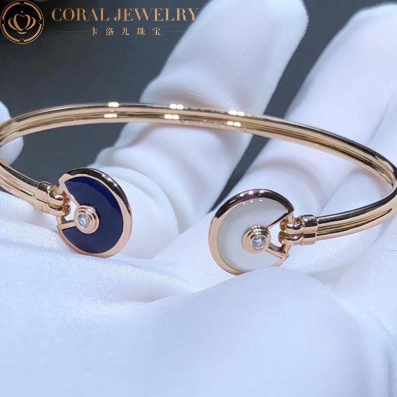 - Amulette de Cartier bracelet, extra-small model, 18K rose gold,lapis lazuli, white mother-of-pearl, set with 2 brilliant-cut diamonds totalling 0.05 carats. Diameter of the motifs: 12 mm.