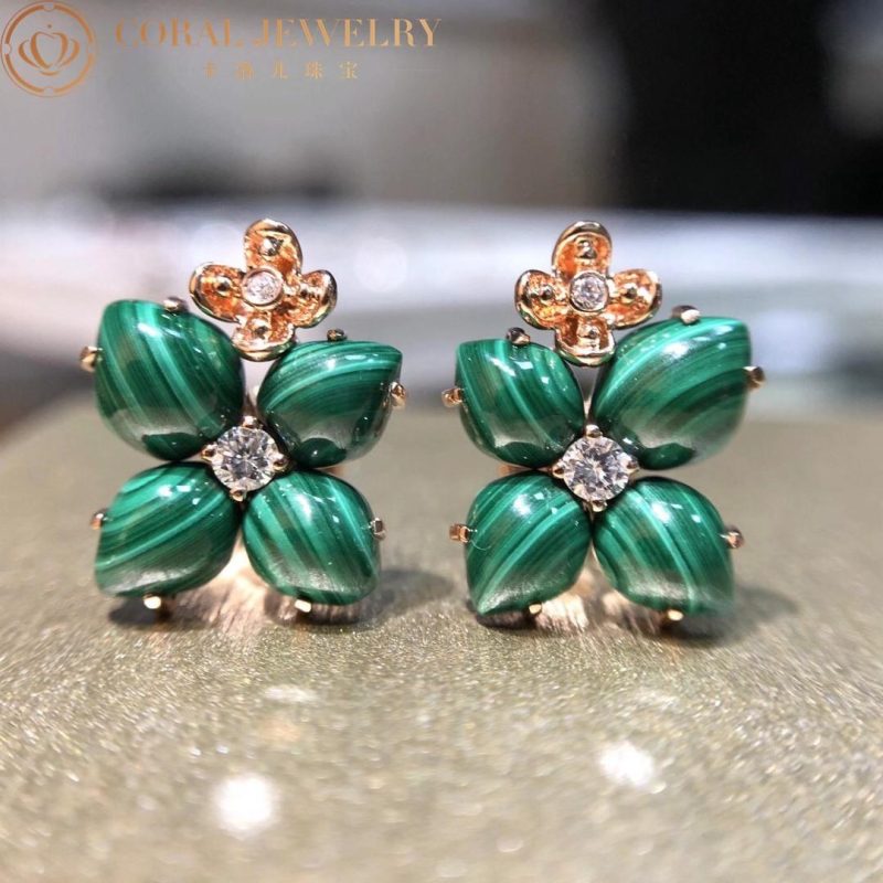 Chaumet Hortensia Jardins Pink Gold Malachite Diamond Earrings 083337