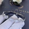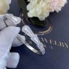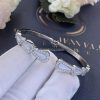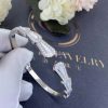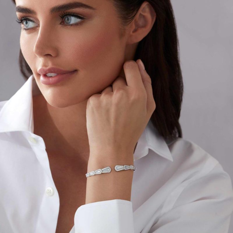 This elegant fan-shaped bangle is made with diamonds and mother of pearl to evoke the delicate pleats of a fan. It is stylish and fits comfortably on the wrist. Unfortunately, it is not available for purchase online. If you’d like to purchase this beautiful bangle, you must visit a Chaumet boutique or a Chaumet outlet.