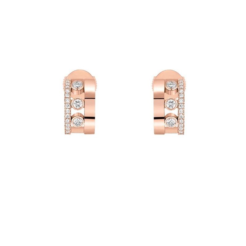• The Move 18 carats pink gold earrings can be worn every day to give your most sensible looks a twist. These mini diamond hoop earrings wrap around the earlobe simply. The small size of these earrings makes them a go-to for every day that can be paired easily with other Move jewellery. The pink gold developed by Messika is particularly soft and subtle. This means the Move Romane earrings will suit all complexions. Our tip: wear the line of brilliant-cut diamonds pointing towards the centre of the face.