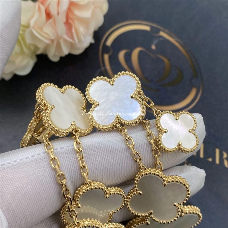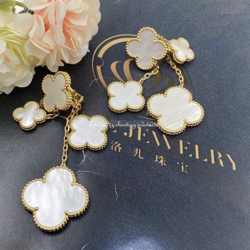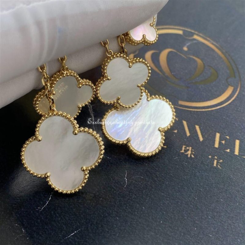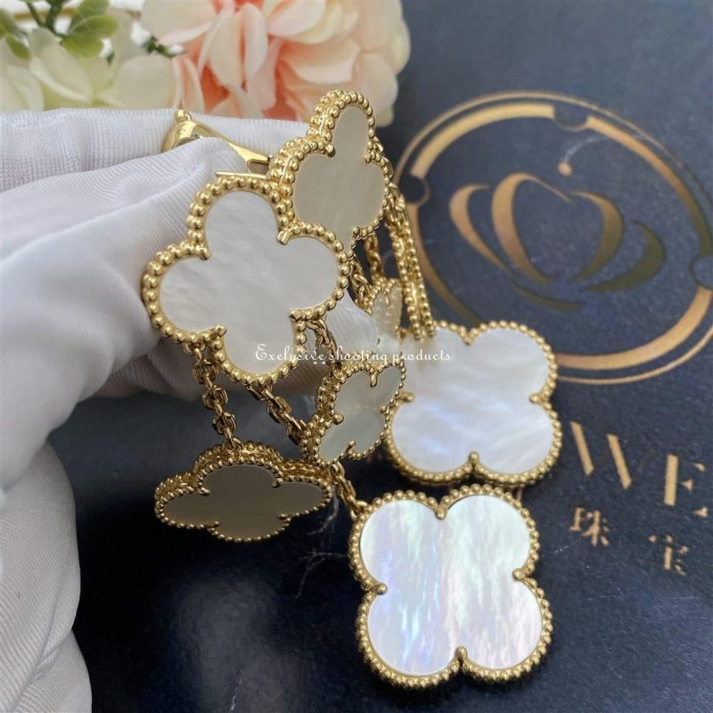 In 2006, Van Cleef & Arpels launched the Magic Alhambra jewelry collection. The collection is a collection of asymmetric designs that incorporate white mother of pearl. It is not difficult to see why the designers chose this material, as it has the ability to display a number of shades.