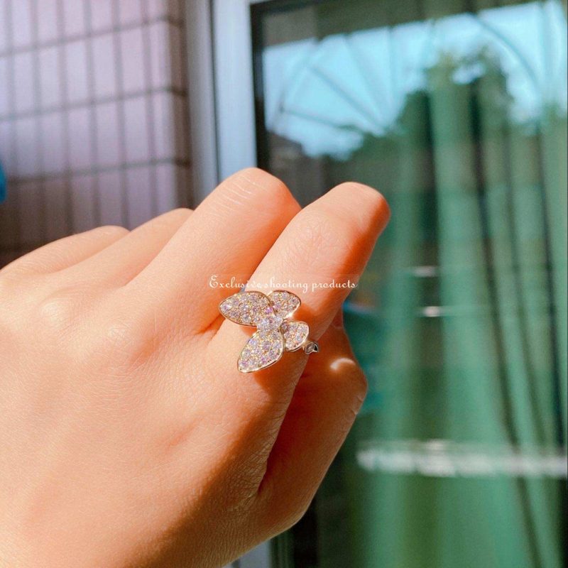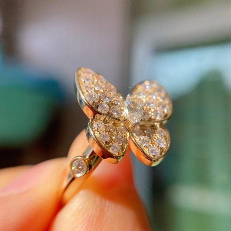 If you are looking for a ring that will do the trick, then you may want to consider the Van Cleef & Arpels Two Butterfly ring Yellow gold Diamond VCARP3DQ00. This is a small but mighty ring, which pays homage to the beauty of a butterfly. It features marquise-cut diamonds and the two aforementioned butterfly motifs.