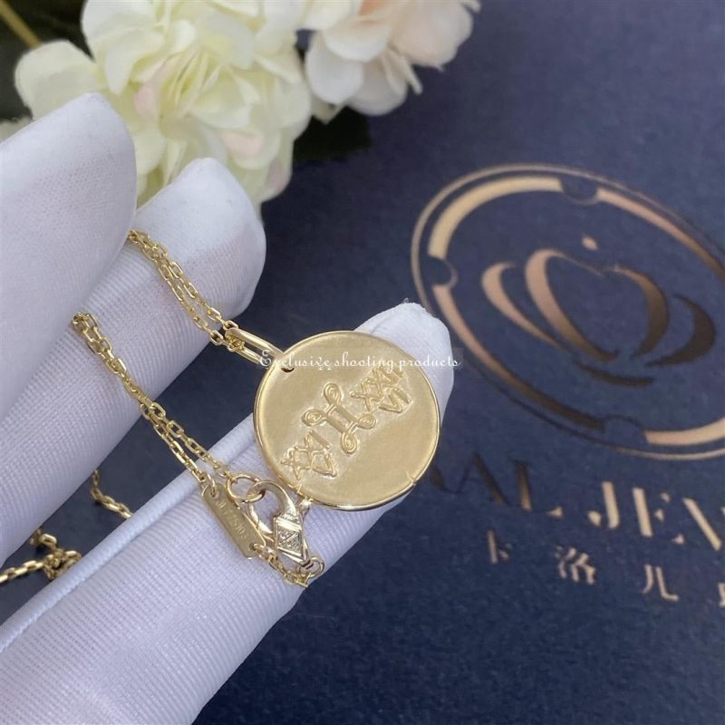 Another example of the Zodiaque collection is the medal Geminorum (Gemini). Made of yellow gold, this piece shines a light on the stars of the Zodiac. It is 21 mm in diameter, and the motifs are arranged in three-dimensional relief. There are also pendants and necklaces that include a zodiac symbol on the front. On the back, a gold depiction of the sign’s name is set.